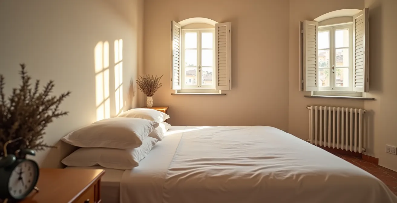 Molti italiani vivono in edifici storici, meravigliosi ma spesso con un isolamento termico non ottimale. In estate, l’afa può rendere le notti insonni. In questo contesto, come evidenziato in un’analisi di Humanitas sulla stanza da letto ideale, la gestione attiva di persiane e tapparelle diventa cruciale. Chiuderle durante le ore più calde della giornata impedisce all’appartamento di surriscaldarsi, mantenendo una temperatura più gestibile la sera. Allo stesso modo, l’uso di tende oscuranti è fondamentale per bloccare l’inquinamento luminoso tipico dei centri urbani, garantendo l’oscurità necessaria alla produzione di melatonina.